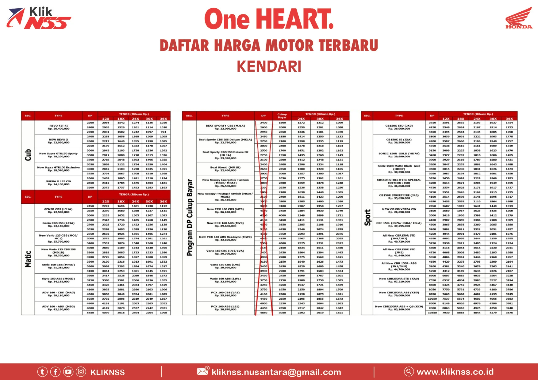 *Berikut brosur harga OTR & DP minim motor Honda Kendari per Januari 2025