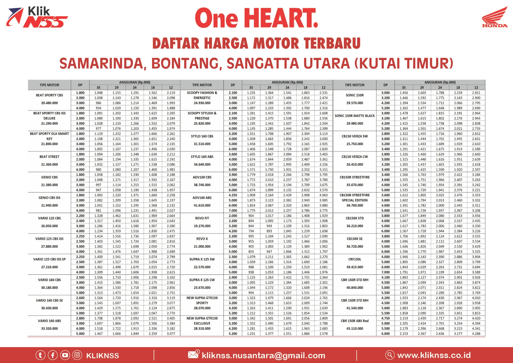Tak hanya itu, saat kini KlikNSS (Nusantara Sakti) bisa membantu pengajuan kredit motor Honda langsung disetujui (ACC) dengan syarat & ketentuan yang berlaku. Untuk mengetahui lebih lengkap, dapat membaca di